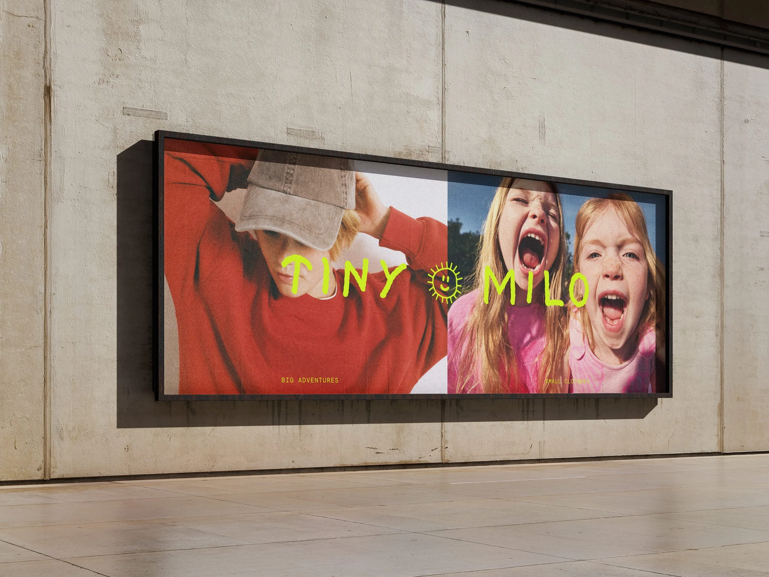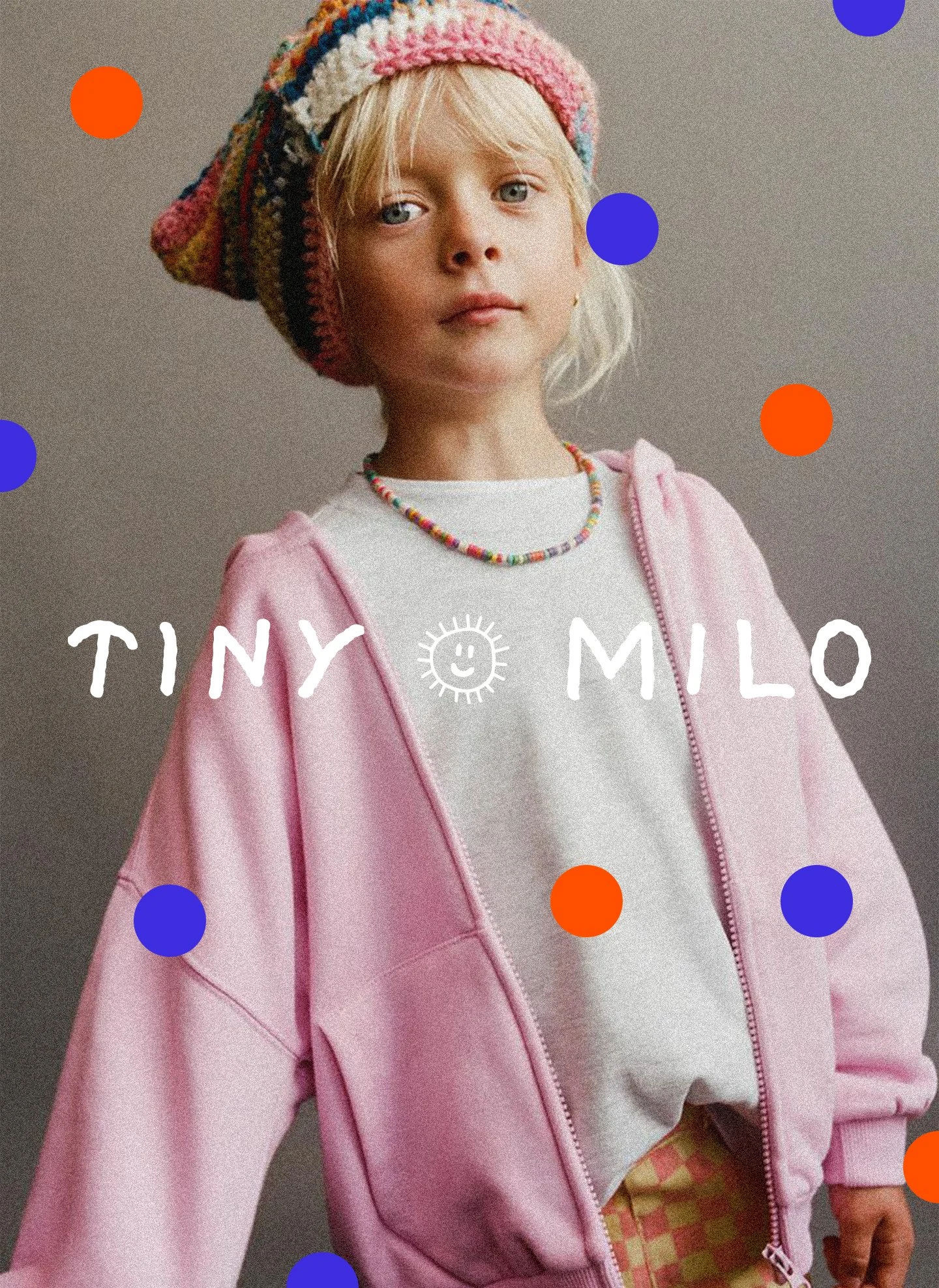 visual identity for a new online childrenswear brand; tiny milo. fusing fashion and fun we wanted to create something that felt vibrant and relaxed, celebrating the fun of childhood whilst still offering a luxe feel. tiny milo brings aussie style to the uk childrenswear market.